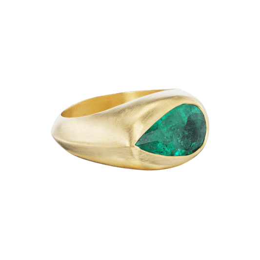 IRIS I EMERALD PEAR SIGNET RING