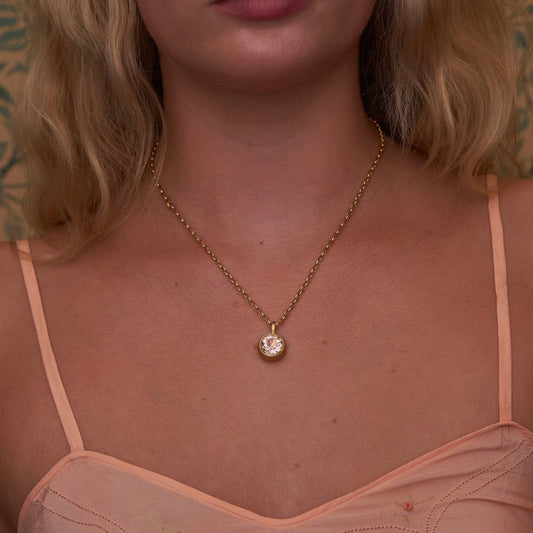 INQUIRE FOR AVAILABILITY & PRICINGPEACH TOURMALINE ROUND PENDANT